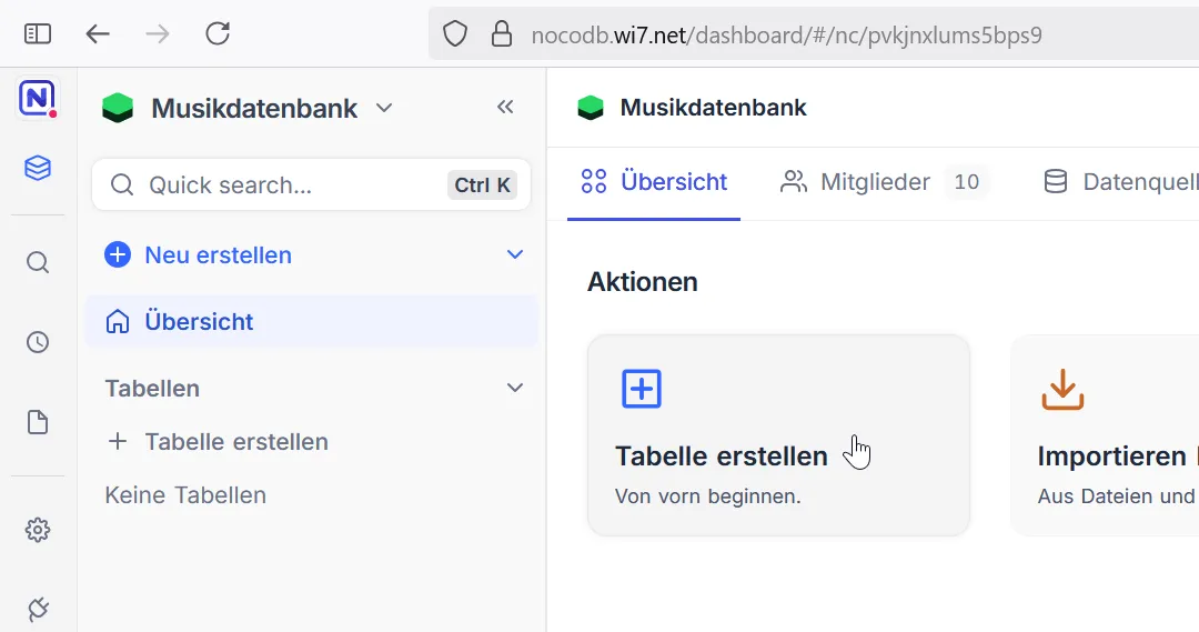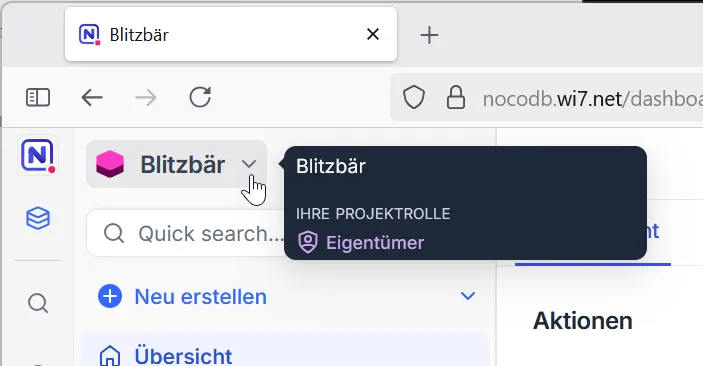 Öffne https://nocodb.wi7.net/sql/ und melde dich mit den NocoDB-Zugangsdaten an.