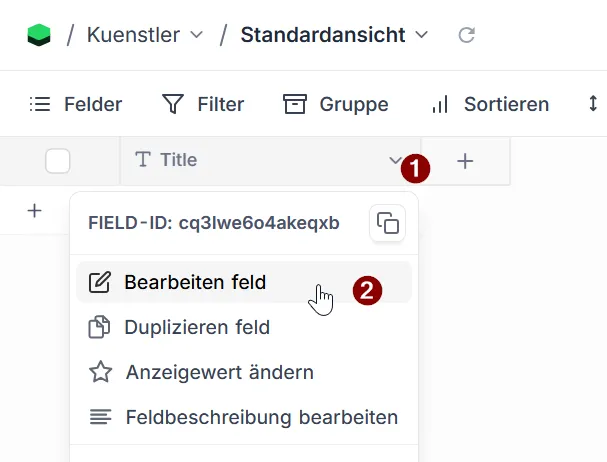 1:11 Benutzer ist 1 KünstlerWir gehen auf eine der beiden Tabellen und wählen “Eins zu Eins” aus.