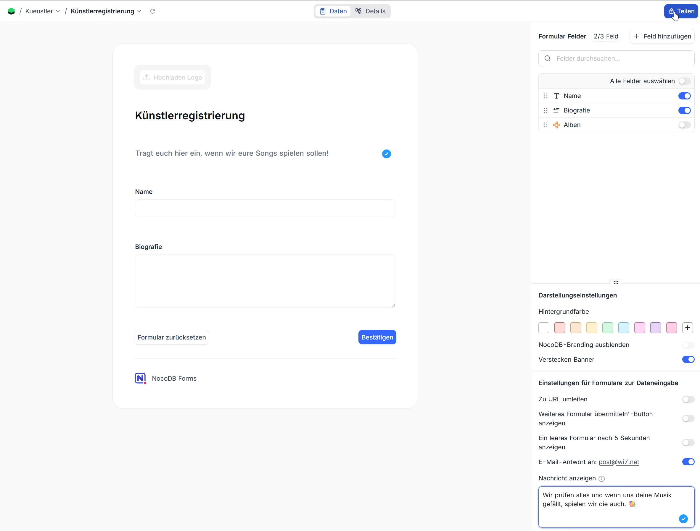 Stelle dann das Formular so ein, dass es für dich passt. Etwa so: