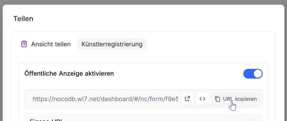 Gehst du dann auf Teilen kannst du es auch mit neuen Künstler:innen teilen: