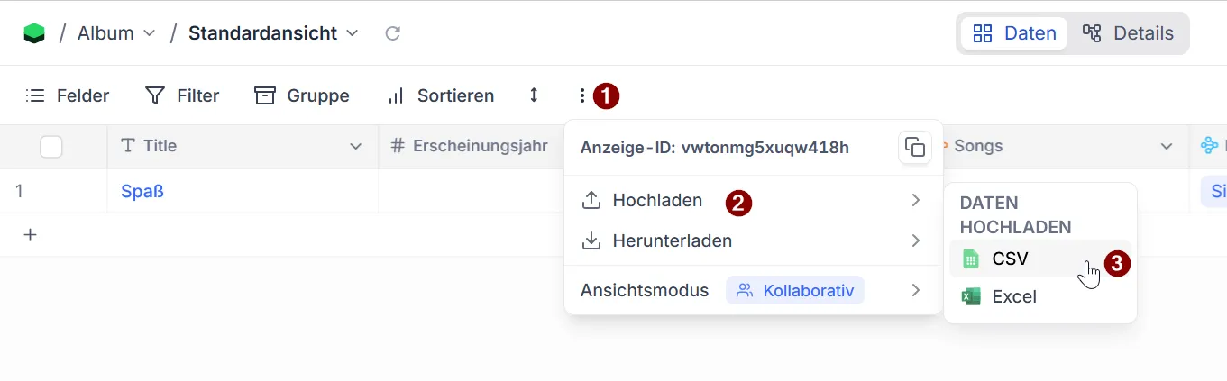 Du kannst Tabellen als CSV-Dateien hochladen.